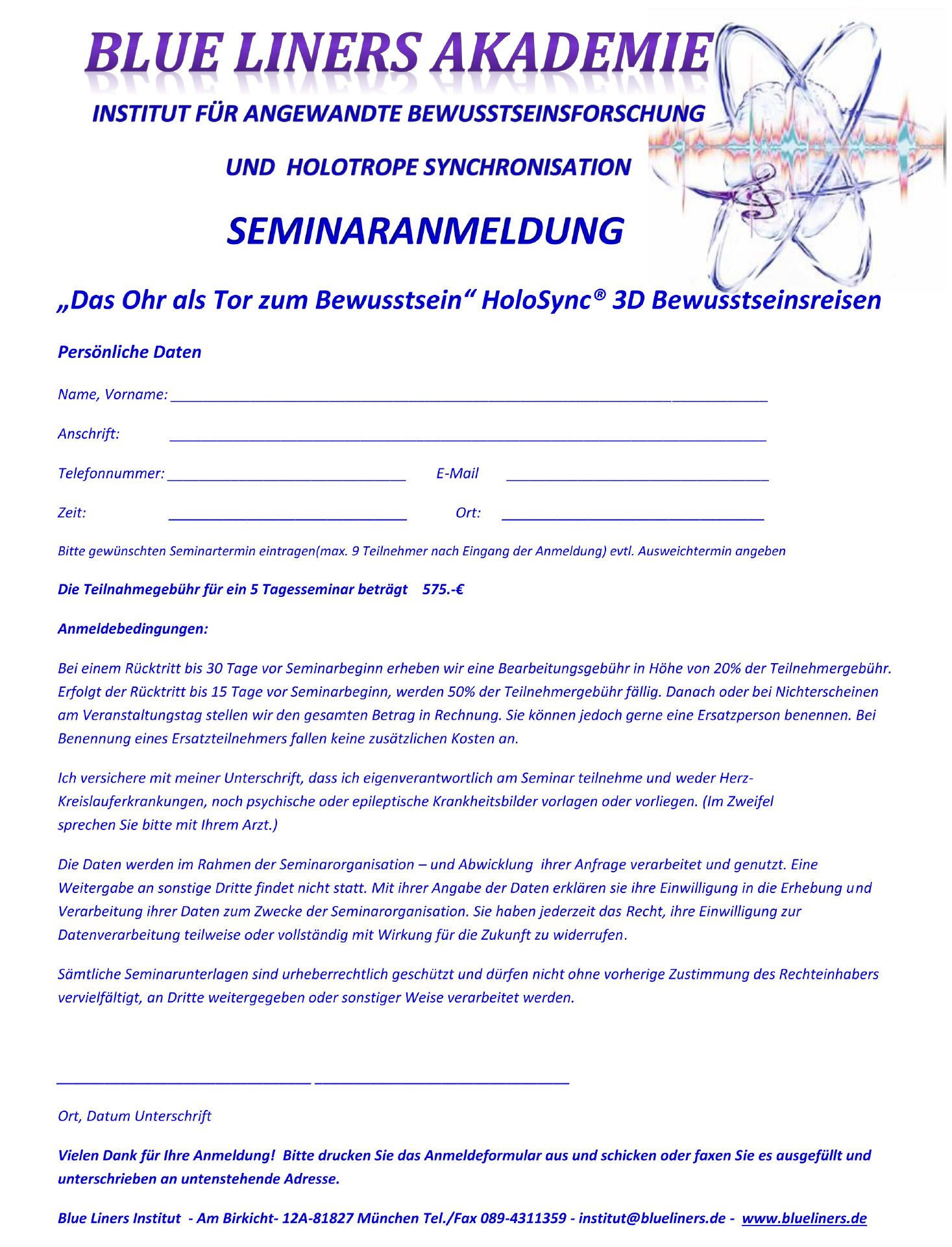 Sie sind hier: Startseite » Seminar » Seminaranmeldung Seminaranmeldung Seminaranmeldung [417 KB] Auf den Link klicken und die Anmeldung ausdrucken